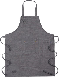 Our KAF Home Strada aprons are constructed from attractive and durable chambray fabric. They include 2 spacious pockets for holding kitchen tools and more. Fully adjustable with a grommet neck loop and tie waist, measuring 33"L x 27"W.
